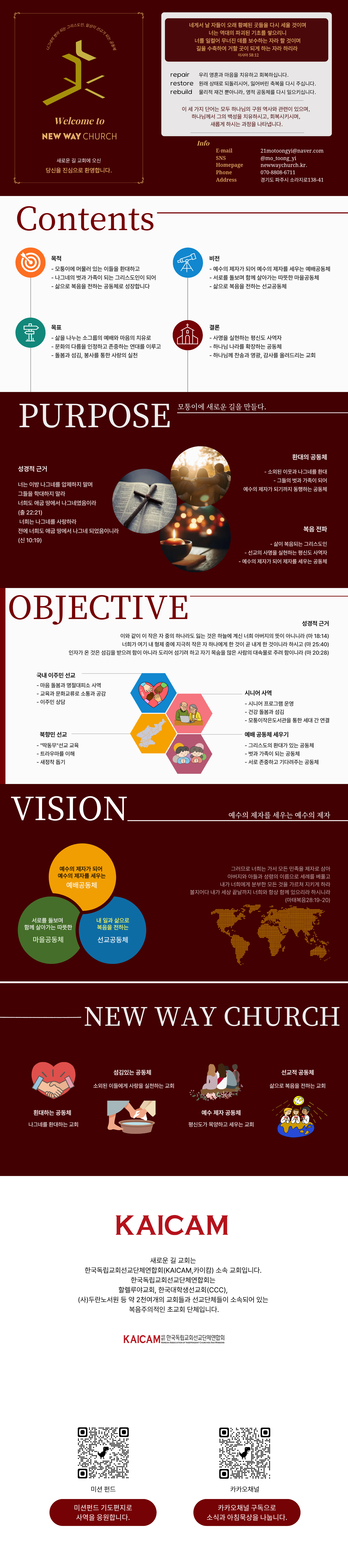 교회 소개 새로운 길 교회를 소개합니다 by NEW WAY CHURCH 2026. 3. 29. 현장체험학습(나들이) 하늘공원 공유하기 게시글 관리 새로운 길 교회 '교회 소개' 카테고리의 다른 글 담임목사 소개 (0) 2026.03.29 관련글 담임목사 소개